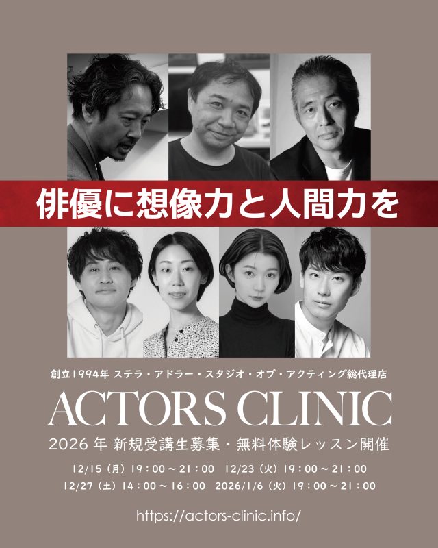 ◎アクターズクリニック東京校 2026年1月期 無料体験レッスン開催のお知らせ◎