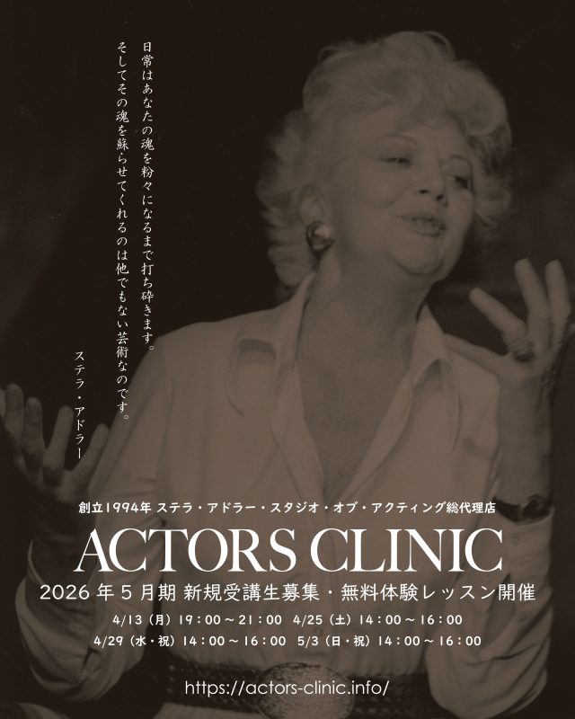 ◎アクターズクリニック東京校 2026年5月期 無料体験レッスン開催のお知らせ◎