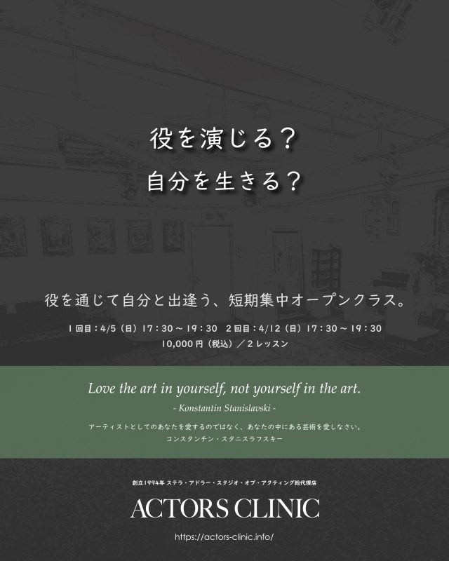 - 役を通じて自分と出逢う【短期集中オープンクラス】開催(4/5,12)のお知らせ